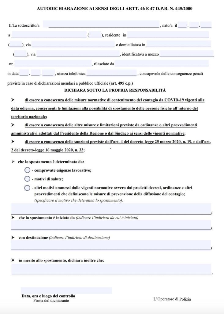 La realtà, come fatto notare da Giovanni Floris, è ben diversa. E basta leggere il testo dell’autocertificazione pubblicata sul sito del Viminale.