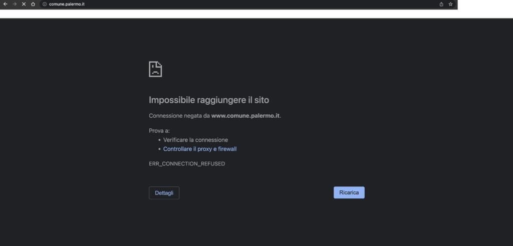 L’impossibilità di accedere al sito del Comune di Palermo è stata registrata da ieri, giovedì 2 giugno (giorno della Festa della Repubblica). Il portale risulta offline: