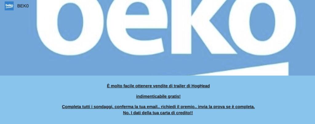 E poi, come rilevato da Bufale.net, la pagina di registrazione smette di fare riferimento a elettrodomestici Beko per lasciare spazio a tutt’altro.