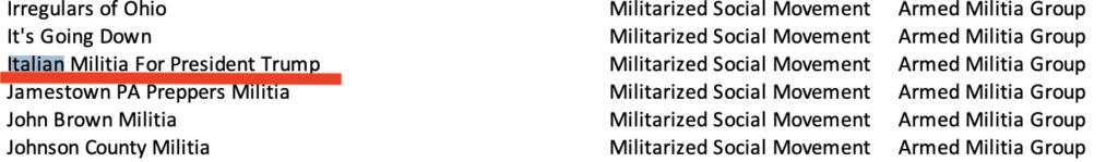 A chiudere questa blacklist Facebook, limitandoci solo alla sponda italiana, troviamo un gruppo – l’unico per quel che riguarda il nostro Paese – che non rientra nell’elenco “hate”, ma in quello dei “Movimenti sociali militarizzati“. In questo caso, però, l’occhio punta diretto verso Oltreoceano con la Italian Militia for President Trump.