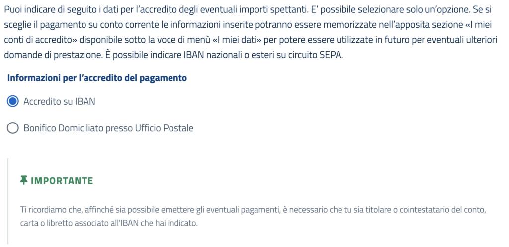 Ogni categoria ha modalità e tempistiche differenti. All’interno delle domande, però, ci sono degli elementi in comune. Oltre alla richiesta di un’autocertificazione (di fatto) sulla propria dichiarazione dei redditi (inferiori ai 35mila euro annui), viene richiesto il metodo di erogazione di questo bonus: accredito su Iban (che sarà richiesto in un successivo passaggio) o bonifico domiciliato presso Ufficio Postale.