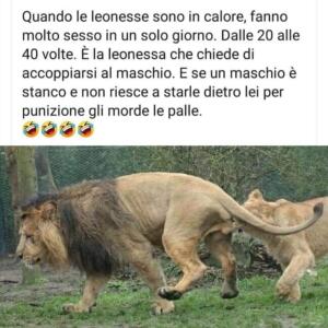 Ci sono dei post che spesso vengono condivisi in modo scherzoso, ma che diventano talmente virali da diventare delle post verità, ovvero delle verità universalmente accettate perché “lo dicono tutti”. La storia è piena di esempi simili, e per storia non ci riferiamo solo a quella del web. Vi parliamo di due foto che ritraggono un leone e una leonessa, quest’ultima intenta a mordicchiare i “gioielli di famiglia” del malcapitato maschio. Le foto sono vere, ma la didascalia che accompagna le stesse non lo è affatto.