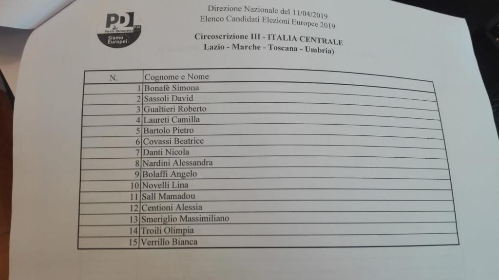 Nella circoscrizione dell’Italia centrale, invece, sarà Simona Bonafè, parlamentare uscente, a guidare la lista del Partito Democratico. Ecco il resto dei nomi che saranno candidati in Lazio, Marche, Toscana e Umbria: