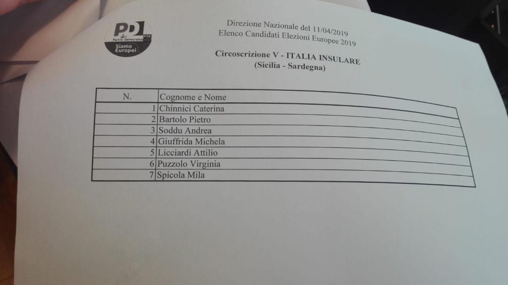 Nell’Italia insulare, invece, a guidare la lista del Partito Democratico sarà Caterina Chinnici, anche lei europarlamentare uscende, figlia di Rocco Chinnici, il magistrato che ideò il pool antimafia e che fu ucciso da Cosa Nostra. Completano la lista: