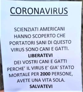 Come riporta anche bufale.net – citando la prima denuncia pubblica da parte di Udine Today – in Friuli sta circolando da giorni un volantino che parla di questo presunto studio di scienziati statunitensi che avrebbe dimostrato come i nostri amici a quattro zampe (citando nello specifico solamente cani e gatti) siano dei portatori sani di Coronavirus. Ovviamente questa narrazione è una palese fake news che, però, è diventata virale anche sui social.
