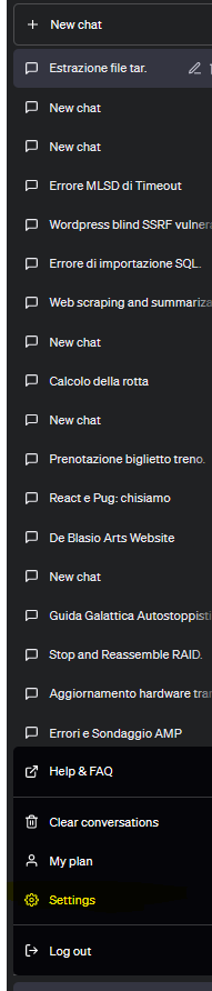 Una volta concluso questo percorso, tutte le chat aperte – quelle che compaiono nella barra laterale – saranno esportate.