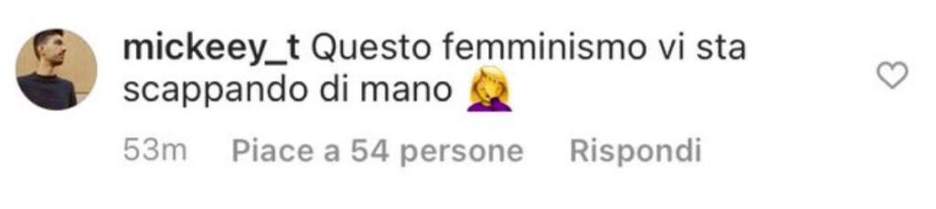 Questa è una piccola raccolta di commenti negativi. La maggior parte delle persone che hanno ascoltato (veramente) le parole di Chiara Ferragni sul victim blaming e tutti gli altri temi trattati, per fortuna, hanno apprezzato. Perché è stato un discorso che è andato oltre il cliché del ‘femminismo’ (anche se è stata accusata pure di quello), dato che ha tirato in ballo anche la grande responsabilità delle donne che puntano il dito invece di esprimere solidarietà. Insomma, la minoranza rumorosa – troppo indaffarata all’onanismo social per comprendere il messaggio – dovrebbe farsi un bell’esame di coscienza.