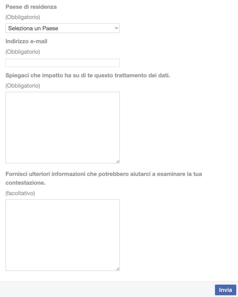 Come negare accesso dati Meta AI, il modulo da compilare