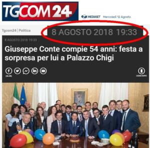 Il giorno 8 agosto, il Premier Giuseppe Conte ha compiuto 56 anni. L’8 agosto del 2018 ne compì 54 e festeggiò il compleanno a Palazzo Chigi. Ne diede notizia, anche TgCom con questo articolo datato 12 agosto 2018, che tuttavia molti stanno condividendo spacciandolo per attuale, indignandosi per il mancato uso della mascherina e per il mancato distanziamento fisico tra i partecipanti alla festa. La piaga dell’analfabetismo funzionale non si manifesta solo attraverso la diffusione di fake news, ma c’è un altro fenomeno altrettanto grave che riguarda il mancato controllo della data di ciò che si sta per pubblicare, condividere o commentare. Di fatto, una notizia vecchia spacciata per nuova, può diventare essa stessa una fake news a tutti gli effetti. Ecco una piccolissima raccolta di commenti indignati e offensivi, scritti da persone che hanno scelto di inveire contro il Premier per un articolo risalente a due anni fa.