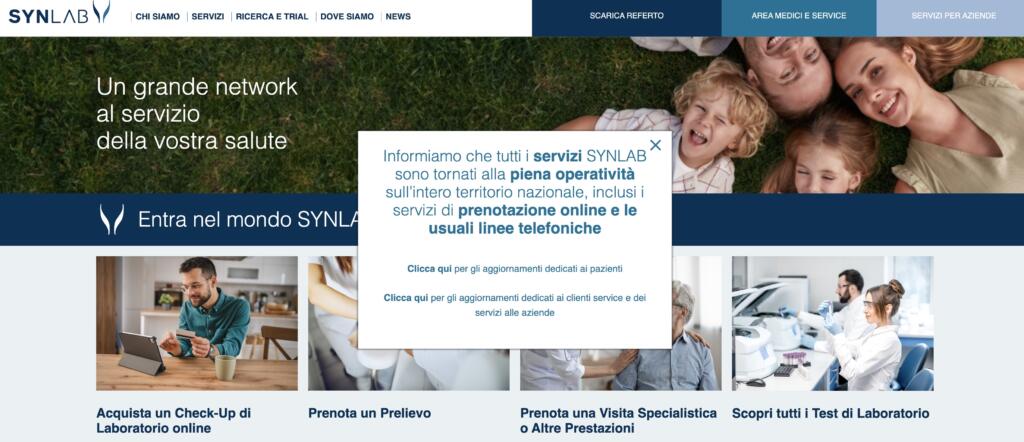 Ed è proprio accedendo al comunicato Synlab Italia presente sulle due pagine interne al sito che emergono dei problemi di comunicazione nei confronti degli utenti.