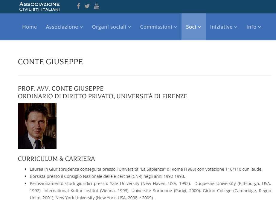 Giuseppe Conte non ha perfezionato i suoi studi giuridici all’Internationales Kulturinstitut, IKI di Vienna, come descritto nel suo curriculum pubblicato sul sito dell’associazione degli avvocati civilisti italiani.