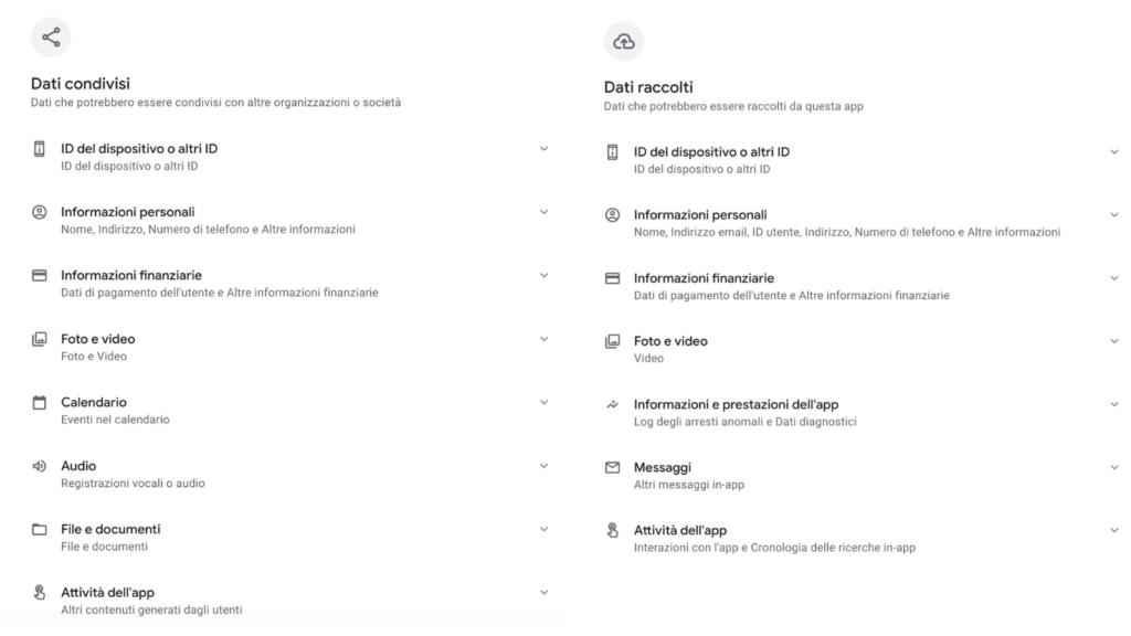 L’evidenza arriva andando sulla pagina di “Booking.com: Hotels & Travel” all’interno del Play Store per i dispositivi Android e cliccando sulla voce “Sicurezza dei dati“, ovvero quello spazio dedicato alla trasparenza sul trattamento dei dati dell’utente.