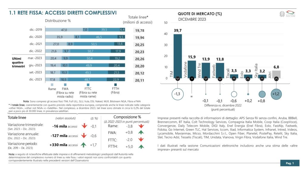 Dati rete fissa in Italia, TIM è ancora leader del mercato