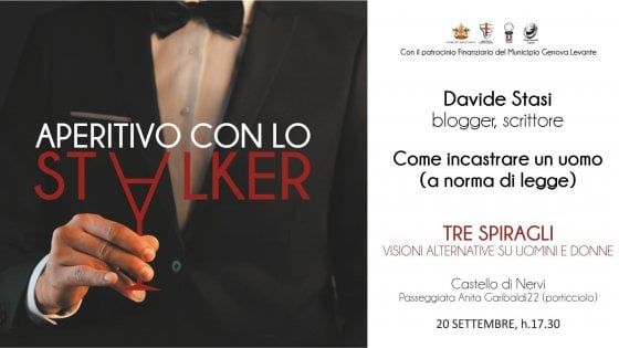 L’evento, in programma venerdì 20 settembre alle 17.30 al Castello di Nervi (Passeggiata Anita Garibaldi 22), si intitola «Aperitivo con lo stalker. Come incastrare un uomo a norma di legge». E già da questo sembra esser molto chiaro l’intento di quel tardo pomeriggio a Genova. Il tutto finanziato e patrocinato dal Comune, come si legge dalla locandina pubblicata sul sito Stalker Sarai Tu, il blog dello stesso Davide Stasi.