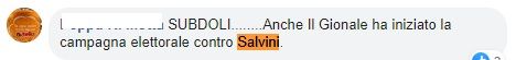 E i commenti di questo tenore arrivano anche sotto articoli postati da testate apertamente schierate verso destra, ma ai lettori (ed elettori) della Lega – quando si legge il nome di Salvini interpellato per questa o quella vicenda – non guardano in faccia a nessuno. Infatti, molte delle ipotesi di complotto nei confronti del senatore del Carroccio ed ex Ministro dell’Interno si trovano tra i commenti della storia di Deborah Prencipe raccontata da Il Giornale.