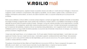 Come sapete da alcune ore la Virgilio Mail è irraggiungibile a causa di un problema tecnico. Stiamo lavorando perché nel più breve tempo possibile tutte le caselle tornino a funzionare. Escludiamo in ogni caso la perdita di dati. (1/3)