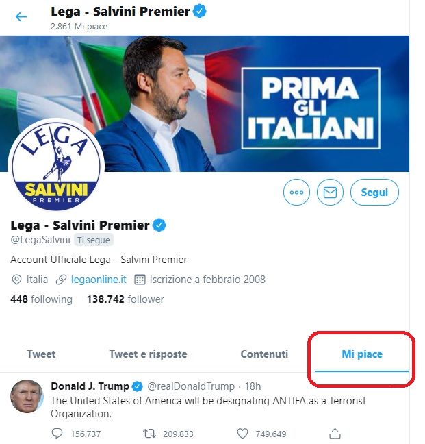 E quel tweet di Donald Trump contro gli antifa non è passato inosservato, suscitando molte polemiche anche in Italia. Ma nel nostro Paese c’è un partito che ha deciso di sostenere questa battaglia del Presidente degli Stati Uniti, utilizzando lo strumento social. Si tratta del profilo Twitter ufficiale (quello certificato dalla cosiddetta spunta blu) della Lega – Salvini Premier.