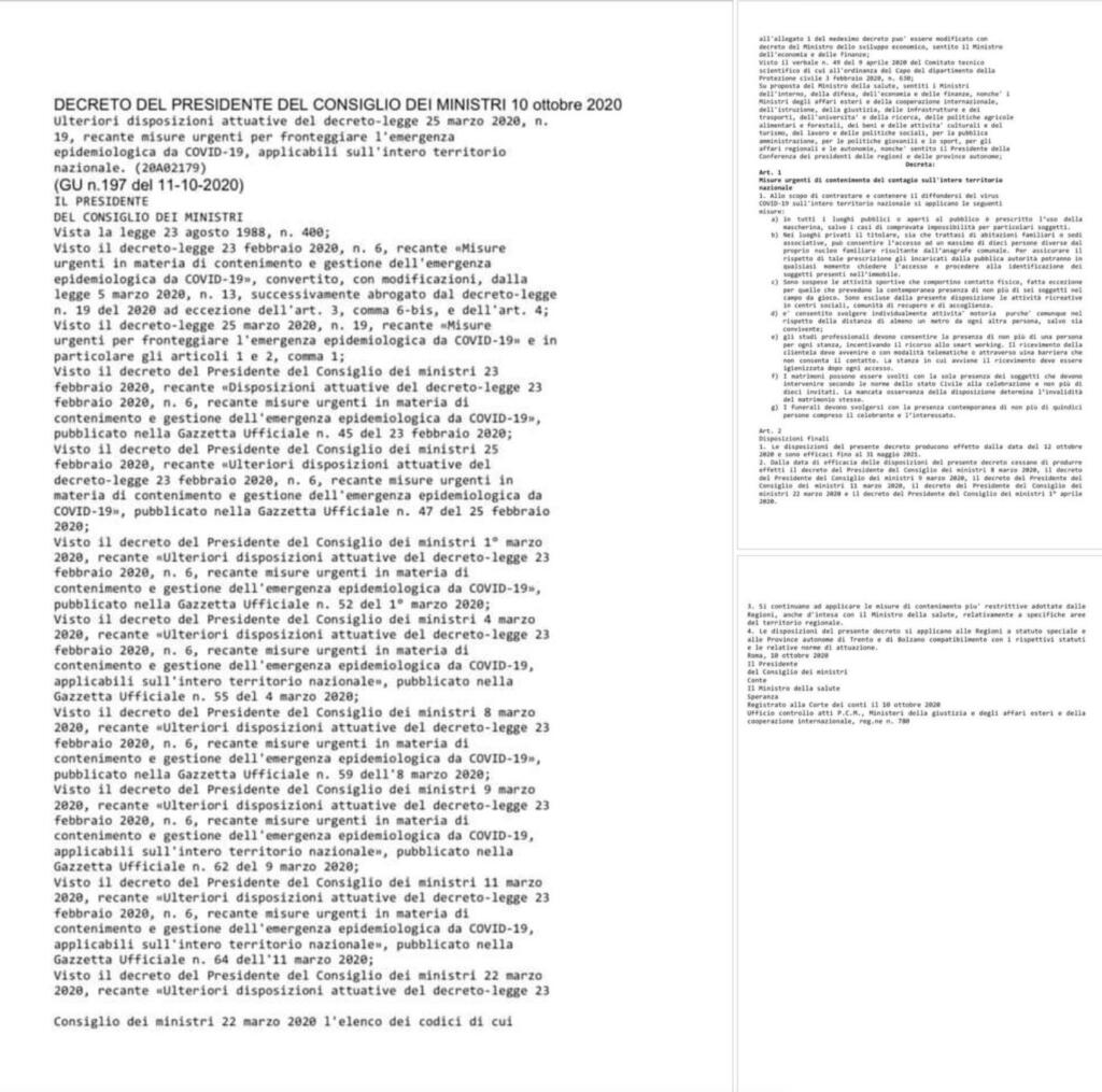 Prima di entrare nella questione tecnica dei (non) provvedimenti occorre sottolineare come il layout utilizzato sia molto simile a quello di un testo pubblicato in Gazzetta Ufficiale. Ma proprio questo aspetto, in realtà, è la conferma della bufala. Non esiste, infatti, alcun dpcm datato 11 ottobre 2020 visto che il prossimo Decreto del Presidente del Consiglio dei Ministri sarà reso noto nella giornata di oggi, lunedì 12 ottobre.