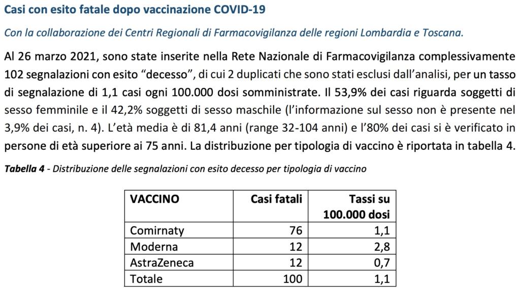 Fatali, ma in che senso? Non si tratta di un rapporto causa-effetto tra la vaccinazione e il decesso segnalato. L’Aifa, nel suo terzo rapporto, sottolinea come la scansione temporale tra la somministrazione di uno dei prodotti anti-Covid e la morte non sia – in molti casi – correlabile. Ovviamente, occorre sottolinearlo, questi dati si basano sulle oltre 9 milioni di dosi somministrate fino al 26 marzo scorso.