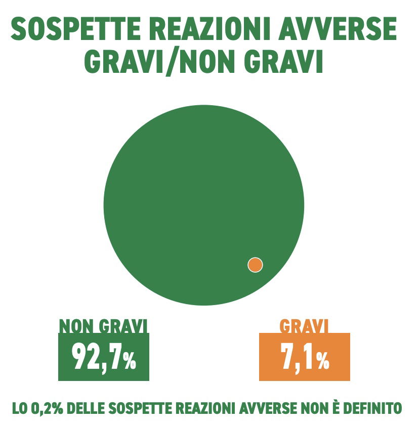 Questo quadro introduttivo serve per dare una cornice ai dati raccolti dall’Aifa nei primi tre mesi di campagna vaccinale (il prossimo report includerà anche le segnalazioni pervenute dalla fine di marzo alla fine di aprile). Ma già dai numeri pubblicati si evidenziano alcuni fattori molto interessanti. Innanzitutto occorre sottolineare come la maggior parte (il 92,7%) degli effetti collaterali segnalati e registrati dopo l’inoculazione di una dose di uno dei prodotti anti-Covid presenti in Italia siano stati “non gravi“.