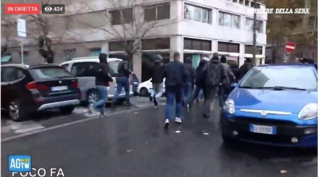 Tensioni vicino allo Stadio Olimpico dove stasera, alle ore 19, andrà in scena il match Lazio-Eintracht Francoforte, valido per l’ultima giornata della fase a gironi di Europa League. I disordini sono nati quando un folto numero di tifosi tedeschi, anziché raggiungere piazzale delle Canestre dove, dopo la verifica dei biglietti, sarebbero dovuti salire sui pullman per raggiungere lo stadio Olimpico, si sono staccati tentando di raggiungerlo a piedi entrando da Ponte Duca D’Aosta, area riservata ai tifosi laziali. A quanto si apprende i tifosi tedeschi hanno lanciato anche petardi e fumogeni. Alcuni di loro sono rimasti feriti durante i tafferugli. Per fermarli si è ricorso anche ad una carica di alleggerimento e agli idranti. Alcuni di loro hanno fatto irruzione nel condominio al civico 3 di piazza Gentile da Fabriano alcuni dei tifosi dell’Eintracht Frankfurt che cercavano di scappare dalla polizia, dopo gli scontri verificatisi in zona Flaminio.