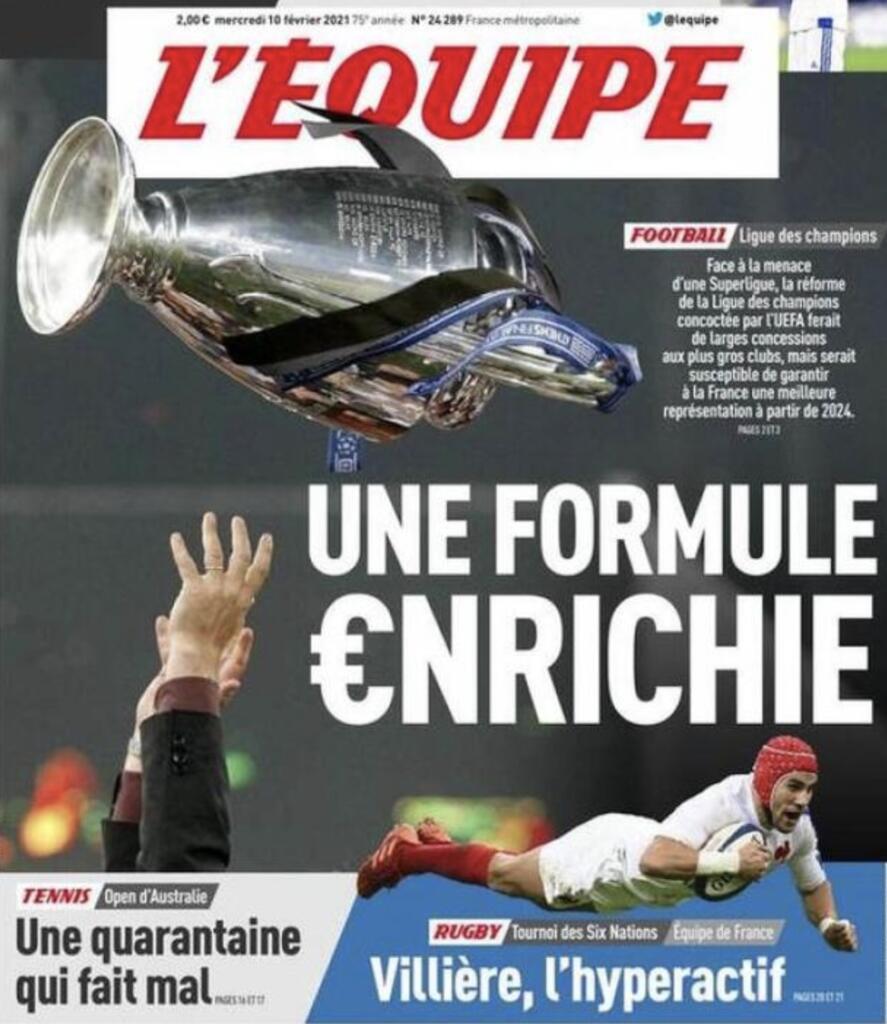 Un editoriale al vetriolo pubblicato questa mattina sul principale quotidiano sportivo francese, molto letto in tutta Europa. L’Equipe contro Andrea Agnelli, tra i tanti, definito «uno di quelli che fanno più male all’idea di universalità del calcio». Non si parlava di Juventus, ma dell’ECA – European Club Association – e del suo progetto di creare la famosa Superlega europea, una competizione che – di fatto – sarebbe un’alternativa alla Champions League e indipendente dalla UEFA, il massimo organismo sul calcio del Vecchio Continente. Il tutto era stato raccontato anche dalla Gazzetta dello Sport questa mattina, ma poi quell’articolo è scomparso dagli archivi.