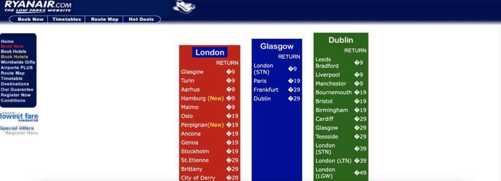 Ma come l’azienda fondata da Tony Ryan ha saputo trarre il meglio dall’evoluzione digitale? Partiamo dal sito. Il dominio è stato acquistato e registrato nel lontano 1996, ma solo diversi anni dopo è arrivata la prima svolta digitale. Questo, grazie a Internet Archive – è un esempio di come appariva il portale di Ryanair nel giugno del 2020.