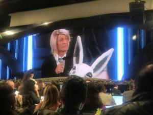 Fiorello rispetta le promesse e arriva vestito da coniglio del cantante mascherato. Un coniglio un po’ speciale, considerato cosa si nasconde dietro la maschera. L’apparizione dello showman nella quarta serata del festival è senza dubbio unica, tipica dello showman, che scende le scale ballando. Chi è questa sera? Il Coniglio del Cantante Mascherato. Tra le risate generali del pubblico che lo accoglie i travestimenti di Fiorello per il successo degli ascolti Sanremo continuano.