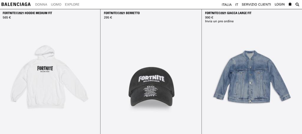 Quello che vedete è solo un piccolo esempio della collezione Fortnite Balenciaga. E il cappellino, alla modica cifra di 295 euro, è il prodotto che costa meno. Insomma, una strategia tra il reale e il virtuale a cui possono aderire solamente i facoltosi appassionati di questo videogioco.