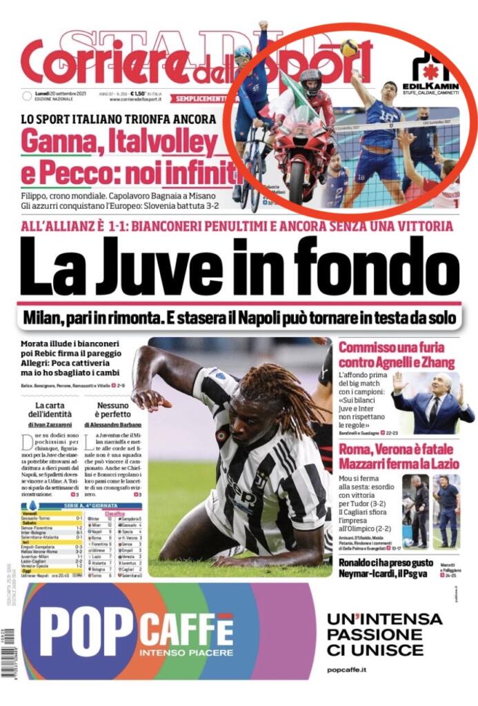 (foto di copertina: prima pagina de Il Corriere dello Sport, 20/09/2021)