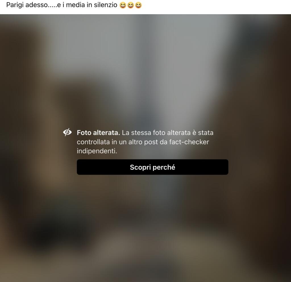 Chi conosce Parigi (ma basta uno strumento come Google Maps e la sua street view) sa bene che quella non è la strada che porta alla Torre Eiffel. Dunque, secondo le regole sui contenuti manipolati da Meta, dovrebbe essere palese l’alterazione. E, invece, dopo la viralità si è provveduti all’etichettatura.