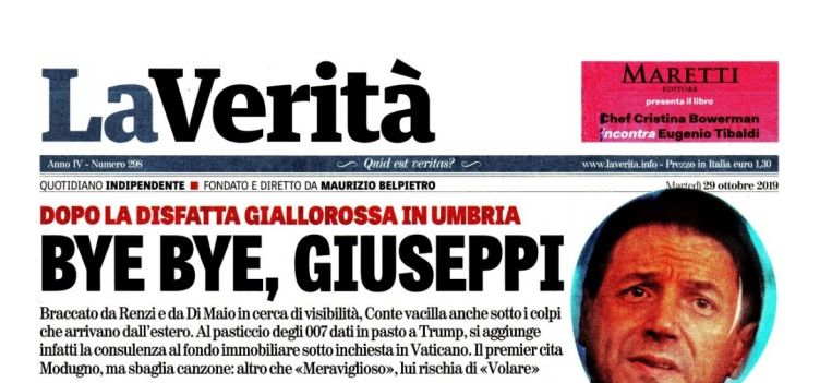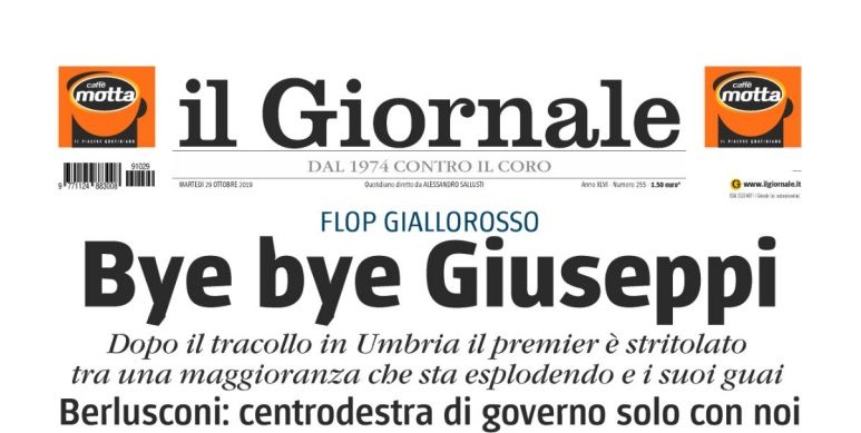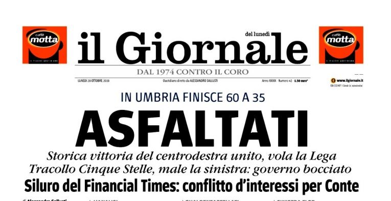 (foto di copertina: collage di prime pagine de Il Giornale e La Verità del 28 ottobre e 29 ottobre 2019)