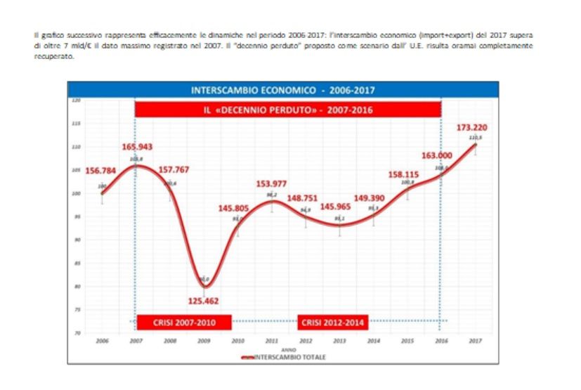 Il primo riguarda l’Interscambio tra i due Paesi dal 2006 al 2017 e mostra come ci si trovi in un periodo di intensa e clamorosa crescita e di come il trend sia destinato a un’impennata continua.