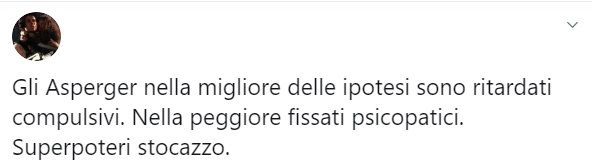 I superpoteri di chi definisce gli affetti dalla sindrome di Asperger – che è un disturbo e non una malattia – dei ritardati cronici. Forse perché il cugino meccanico (con tutto il rispetto per la categoria) glielo deve aver detto mentre aveva le mani impiastrate di olio per automobile. Ma questo è solo uno dei tanti esempi che si possono trovare su Twitter inserendo la chiave di ricerca ‘Greta Thunberg’ o ‘Asperger’.