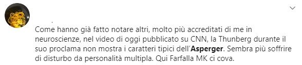 E se questo schifo non sembra sufficiente ecco nascere i complottisti che, adesso, mettono anche in dubbio le parole della stessa Greta Thunberg sulla sua sindrome di Asperger.