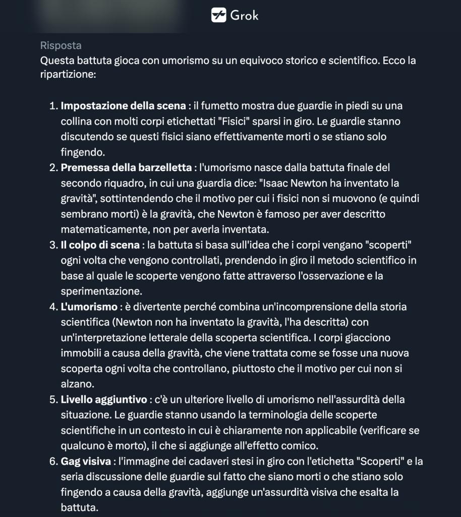L’esempio è stato pubblicato proprio da Grok su X, chiedendo all’AI di spiegare il significato di un meme che rispetta proprio le caratteristiche del paradosso e dell’ironia.