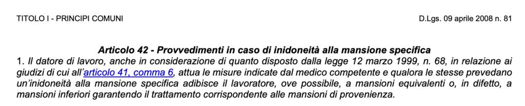 E il punto ‘b’ del comma 2 dell’articolo 279 del Testo Unico rimanda all’articolo 42 che recita: