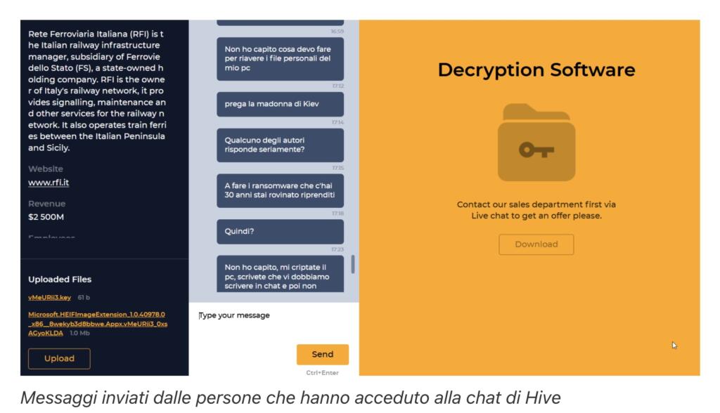 Hive Ransomware, i messaggi all’hacker delle Ferrovie