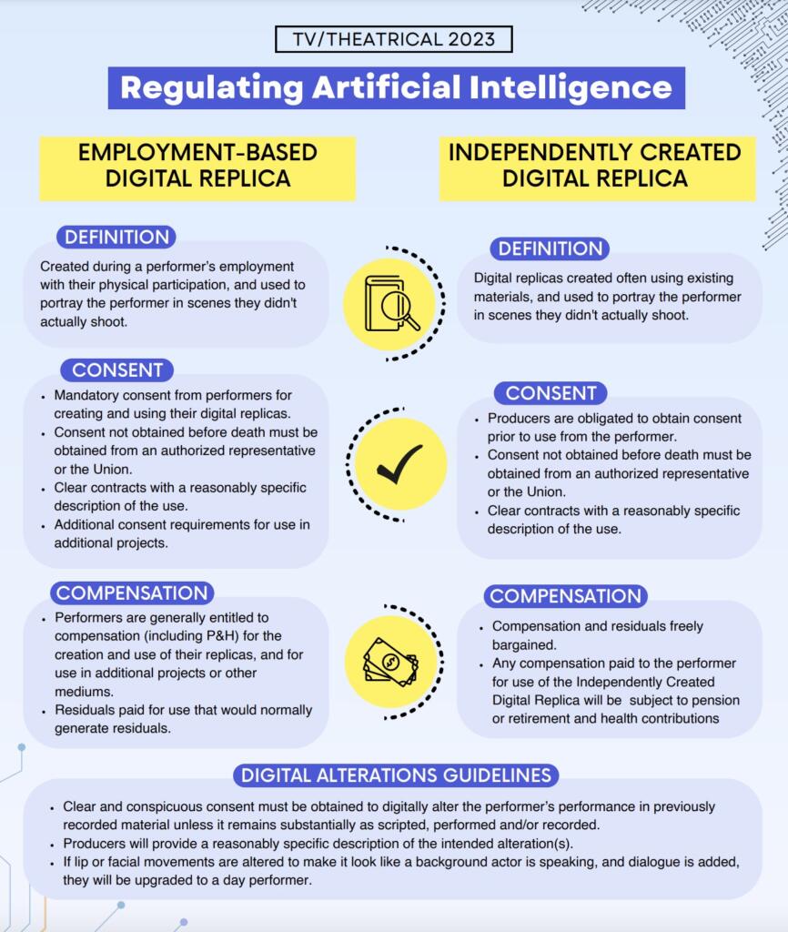 Nel documento che il sindacato degli sceneggiatori e attori americani (SAG-AFTRA), si fa riferimento a questo aspetto fondamentale sull'accordo che ha posto fine allo sciopero