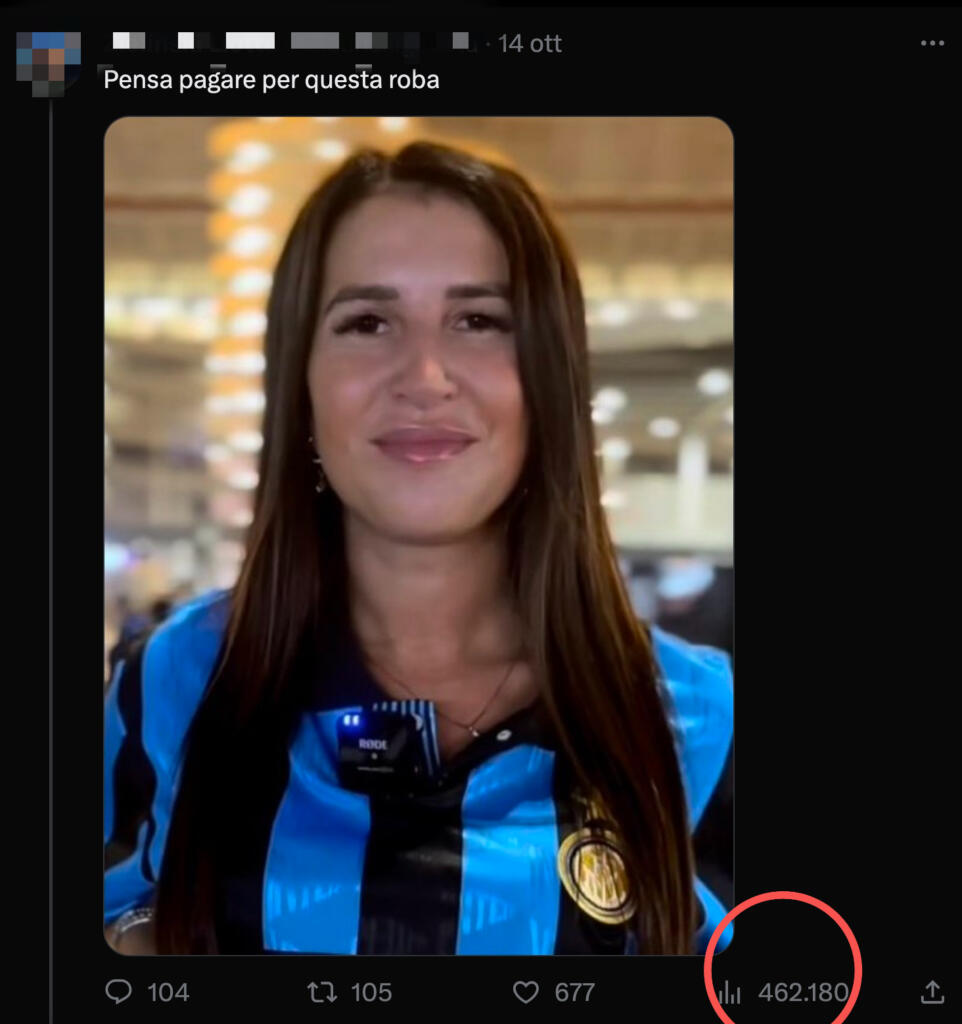 Come fa un profilo seguito da pochissimi account a generare un volume di coinvolgimento così alto? Leggendo i numeri, a oggi (lunedì 16 ottobre) quel post, quella foto e quel commento sono stati visualizzati da oltre 462mila persone. Questo vuol dire che quasi mezzo milione di utenti ha visto comparire questo contenuto all’interno del suo feed. E non solo gli utenti (oltre 42mila) che seguono Ilaria Sigaudo su X. Una visibilità così elevata è dettata dall’algoritmo della piattaforma social che, come noto, non si limita a “premiare” chi ha sottoscritto l’abbonamento e ha la “spunta blu” a pagamento (né la content creator né l’altro utente la hanno), ma tutti quei post su cui si genera una discussione a cui partecipano tante persone.