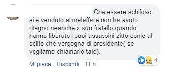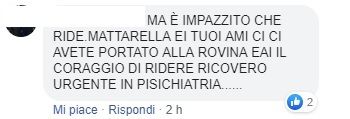 Ecco una dozzina di commenti con gli insulti a Mattarella, preso di mira – soprattutto – per quella immagine in cui ride (si sa solo che si tratta di un’immagine Ansa, ma non si sa a quando risalga). Ma tutto fa brodo per fomentare le polemiche.