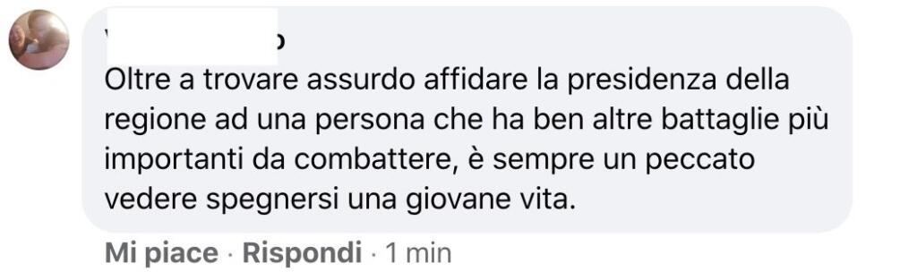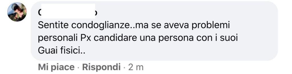 Come se essere malati dovesse togliere qualsiasi possibilità di vivere e proseguire nel proprio percorso. Poi c’è chi se l’è presa con Matteo Renzi per le condoglianze e il rammarico espresso via social.