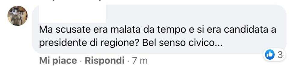 Una minoranza, ma molto rumorosa. Ma è quella che risalta maggiormente tra i vari (tanti, la maggior parte) di cordoglio e condoglianze. Sparuti, ma che spiccano per quel senso di vergogna (forse) sconosciuto e che trova il libero sfogo su Twitter e Facebook. Ed è così che troviamo persone che si chiedono quale fosse il senso di candidare una persona malata, chi sostiene che il destino abbia sbagliato mira. E chi critica alcuni politici per le condoglianze espresse: perché se sei di Sinistra allora non ti puoi rammaricare e addolorare per quanto accaduto.