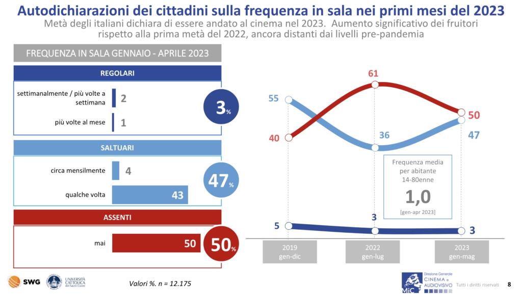 La più recente indagine di SWG per il Ministero della Cultura, mostra un aumento delle presenze in sala rispetto all'anno precedente