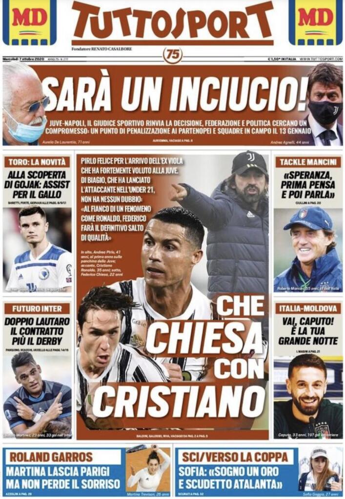 Ma cosa scriveva Tuttosport sulla sua prima pagina datata 7 ottobre 2020?