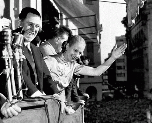 10 – JUAN DOMINGO PERON E MARIA EVA DUARTE – Maria Eva Duarte, conosciuta come Evita, di origini benestanti, era l’ultima di cinque figli naturali di un piccolo proprietario terriero, Juan Duarte, e della sua cuoca Juana Ibarguren. Eva Duarte de Perón divenne una celebrità dopo il matrimonio con il futuro presidente argentino Perón, sposalizio celebrato il 9 dicembre 1945. Ella lo aveva conosciuto mentre lavorava a Radio El Mundo nel 1944, probabilmente durante una raccolta fondi per le vittime di un terremoto. Juan Domingo Perón era allora agli inizi della sua carriera, ed era rientrato in Argentina dopo un soggiorno di due anni in Italia, dal 1938 al 1940, dove aveva seguito un programma di aggiornamento militare presso il comando delle truppe di montagna a Trento. In questo periodo si dichiarò ammiratore del fascismo e del suo leader, Benito Mussolini, ma non ottenne mai il permesso di trasferirsi a Roma, decidendo anche per questo di ritornare in patria. La loro relazione sentimentale divenne poi anche politica quando Evita, il 17 ottobre 1945 guidò la manifestazione per la liberazione del generale Perón, arrestato per le sue attività contrarie agli interessi militari. Evita Perón morì il 26 luglio 1952, ad appena trentatré anni, dopo una lunga battaglia contro un cancro al collo dell’utero.