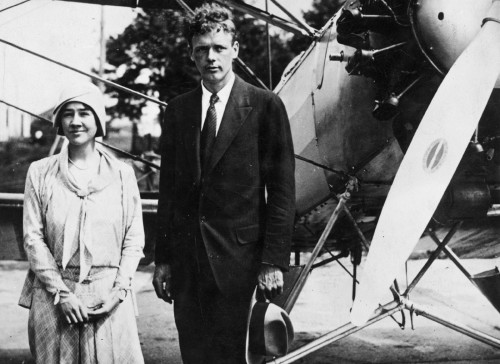 5 – CHARLES AUGUSTUS LINDBERGH E ANNE SPENCER MORROW – Nel 1927 Anne Spencer conosce Charles Lindbergh, durante una visita dell’aviatore all’Ambasciata degli Stati Uniti a Città del Messico. Nel 1928 si laurea in letteratura allo Smith College e il 27 maggio 1929 sposa Lindbergh. Nel 1932 il primo figlio della coppia, Charles A. Lindbergh III, viene rapito e, nonostante il pagamento di un riscatto di 50.000 dollari, viene trovato morto dopo qualche settimana. Nel 1934 riceve dalla National Geographic Society la Hubbard Gold Medal per aver effettuato 40.000 miglia di esplorazione aerea sui cinque continenti insieme al marito. Nel 1935 pubblica il suo primo libro, “North to the orient”, un resoconto delle sue avventure aeree del 1931 con Lindbergh. Il libro diventa un bestseller e riceve il National Booksellers Award come il più notevole libro di nonfiction dell’anno. Diventa inoltre la prima donna americana a conseguire la licenza di volo per aliante. In questo periodo i Lindbergh si trasferiscono in Europa e Anne alimenta pettegolezzi e cronache rosa invaghendosi di Antoine de Saint-Exupéry, autore-aviatore come lei, che la seduce coi suoi progetti d’avventure. Lo scandalo fu enorme ma i Lindbergh non divorziarono. Anne Morrow Lindbergh nel 1944, ormai madre di quattro figli, pubblica “The steep ascent”; è il suo primo insuccesso editoriale, in gran parte dovuto all’ostilità verso la politica prebellica della famiglia Lindbergh. In seguito pubblica altri nove libri, tra cui autobiografie, romanzi e raccolte di poesie. Muore nel 2001 nella sua casa in Vermont.