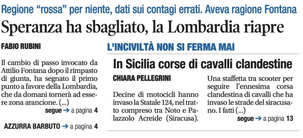 Il quotidiano di Senaldi non cita le carte ufficiali e dà il merito del ritorno in zona arancione a Fontana