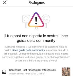 Il post è stato rimosso, come si legge nella segnalazione pervenuta all’account Instagram della band romana, per «atti sessuali». Ripetiamo: sì, il gesto non è stato molto oxfordiano, ma cosa può essere definito un atto sessuale? Sul social delle fotografie ci si imbatte, spesso e volentieri, in contenuti ammiccanti (al limite del nudo integrale) pubblicati da influencer di vario ordine e grado. E, difficilmente, quei post vengono rimossi.