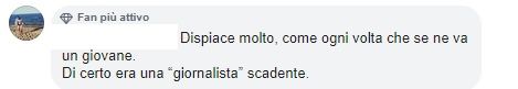 Ne siamo certi: ovunque Nadia Toffa si trovi ora, lei risponderà a queste infamie con il suo sorriso che l’ha accompagnata sempre durante questa sua lunghissima battaglia contro «il bastardo». Ma qui, nel mondo terreno e ricolmo di cuore caldo, è legittimo incazzarsi per la solita deriva dei social che non riesce a fermarsi neanche di fronte alla morte. E così, come un triste spettacolo di cui siamo quotidianamente spettatori (quasi inermi) ecco che la morte della famosissima Iena diventa la classica occasione per vomitare veleno e insulti sui social.